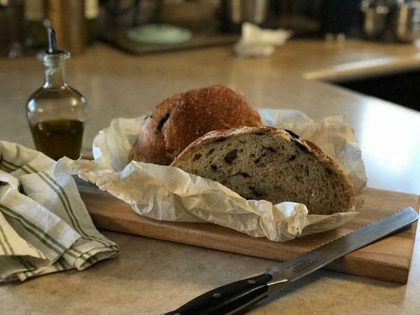 This Kalamata Olive bread is rustic, crusty and simply divine. Homemade bread a burst of savory, briny flavor with beautiful pop of color. A great gift for holiday gatherings, or with bowl of soup or just dip and sip with a glass of wine